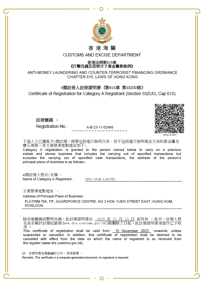 Argo Diam Limited is also a proud founder member of the “Hong Kong Indian Diamond Association Limited”.