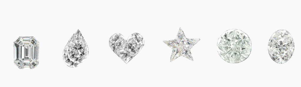 A creative craftsmanship using specially cut and polished smaller fancy cut diamonds to shape together a larger solitaire diamond illusion.